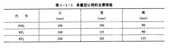 (1) 承重空心磚的主要規(guī)格有三種,見(jiàn)表1-1-1
