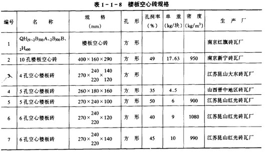 非承重空心磚的主要規(guī)格有兩種,見(jiàn)表1一1一4。
