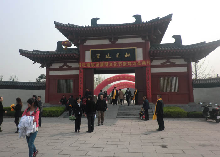 2013年4月3日,上午10時(shí),莊嚴(yán)肅立的祭祀隊(duì)伍在杜甫故里靜靜佇立,在主持人的引領(lǐng)下,主祭人緩緩步入祭祀主會(huì)場(chǎng)。在行過(guò)凈手之后,首屆杜甫故里清明祭拜“詩(shī)圣杜甫活動(dòng)由此拉開(kāi)序幕。主祭人神情肅穆,儀態(tài)莊重的分別完成了凈手、奠帛、誦讀祭文等環(huán)節(jié),童聲誦讀的祭文,余音裊裊,猶如天籟,磬入心脾;隨后,朝圣隊(duì)伍和各界群眾在音樂(lè)的伴奏下向詩(shī)人堂三鞠躬,以此告慰詩(shī)人在天,整個(gè)祭祀活動(dòng)達(dá)到了高潮。這一刻,種種情愫穿越時(shí)空,華夏子孫與我們自己的精神大師心照神交,我們心有所依,情有所傍,文化傳承的責(zé)任與擔(dān)當(dāng)永世不忘。